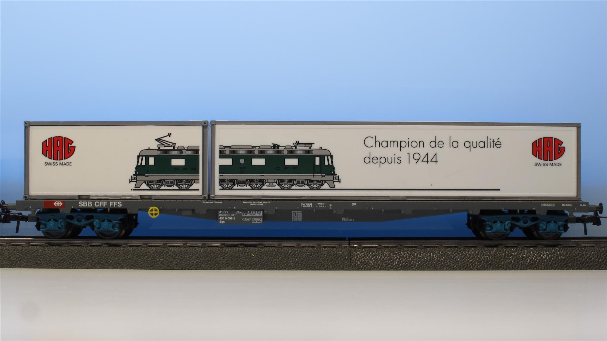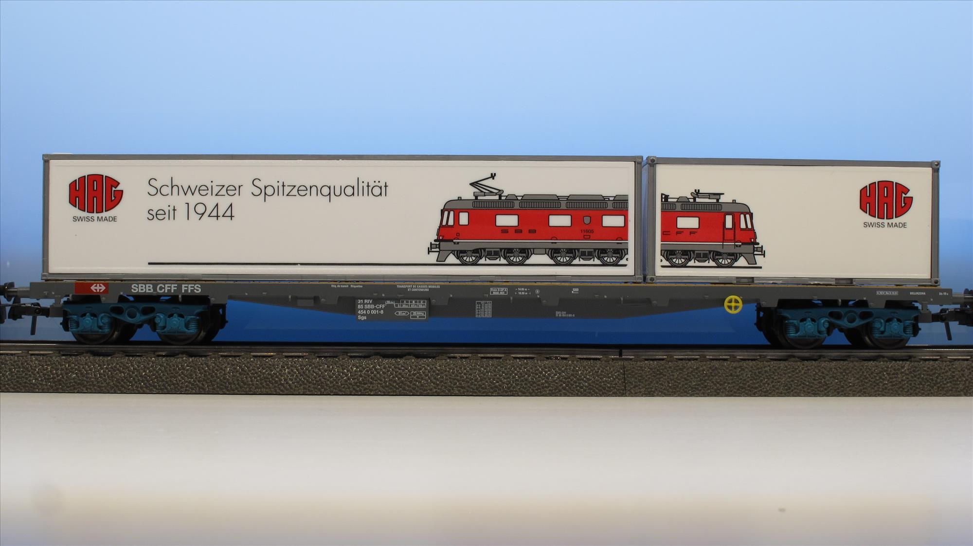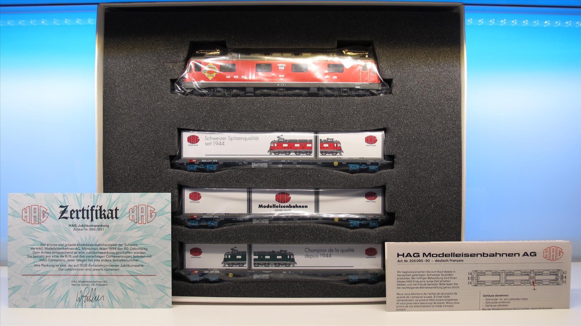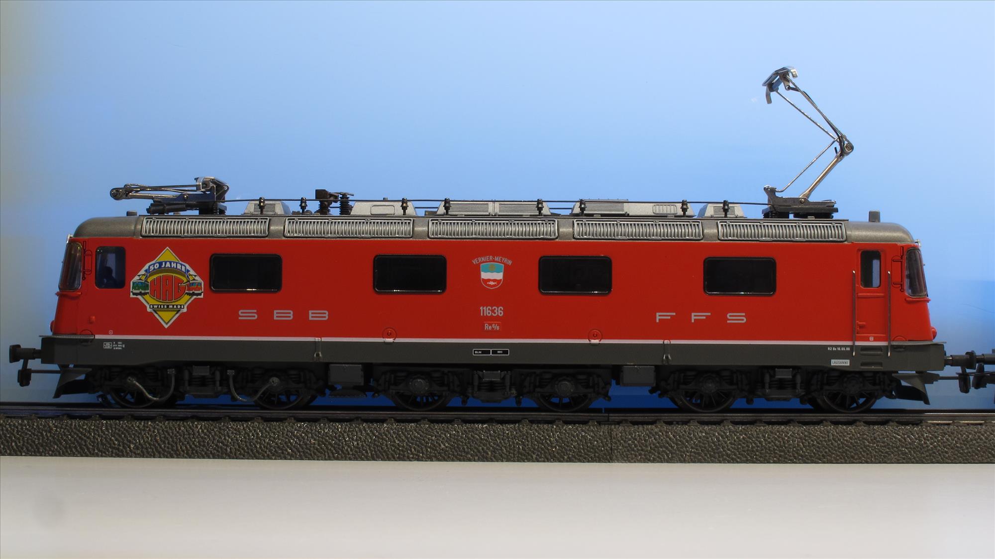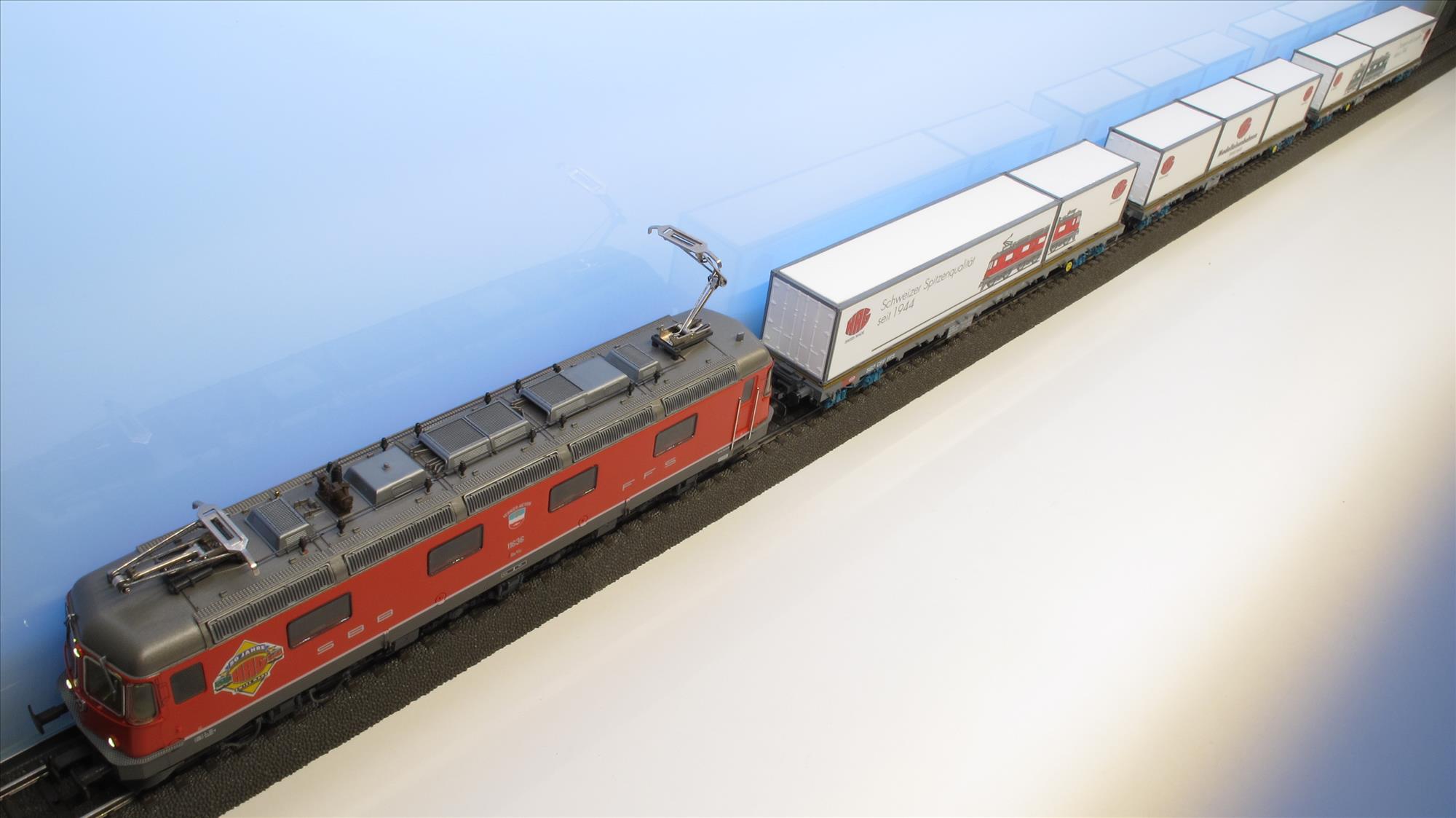 | Produktbeschrieb | Jubiset mit 3 Containerwagen, Wappen von Vernier-Meyrin, Lok hat aufgeklebte Folie mit Jubi-Signet, Gesamt-Auflage aller 7 Betriebsnummern ca. 1'500 Exemplare |