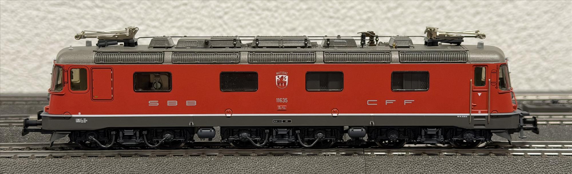 | Produktbeschrieb | Wappen von Muttenz, eckige Lampen, Sondermodell David Keusen, Klimaanlage, Auflage 3 Exemplare. Wiederauflage 2016 mit neuer Beleuchtung, Klimaanlage und ETCS Ausrüstung |