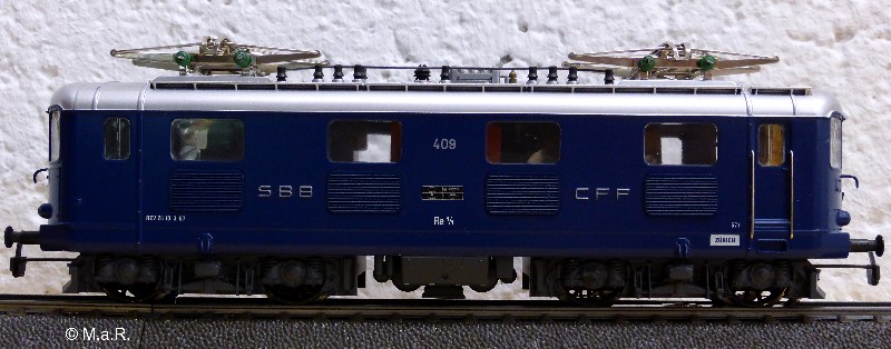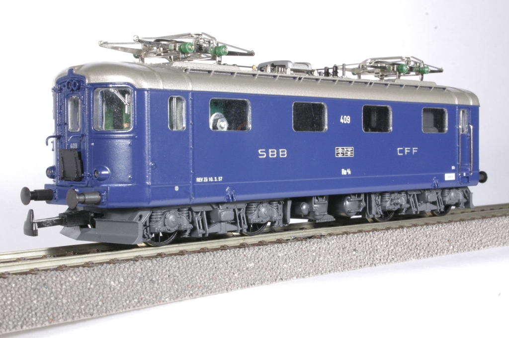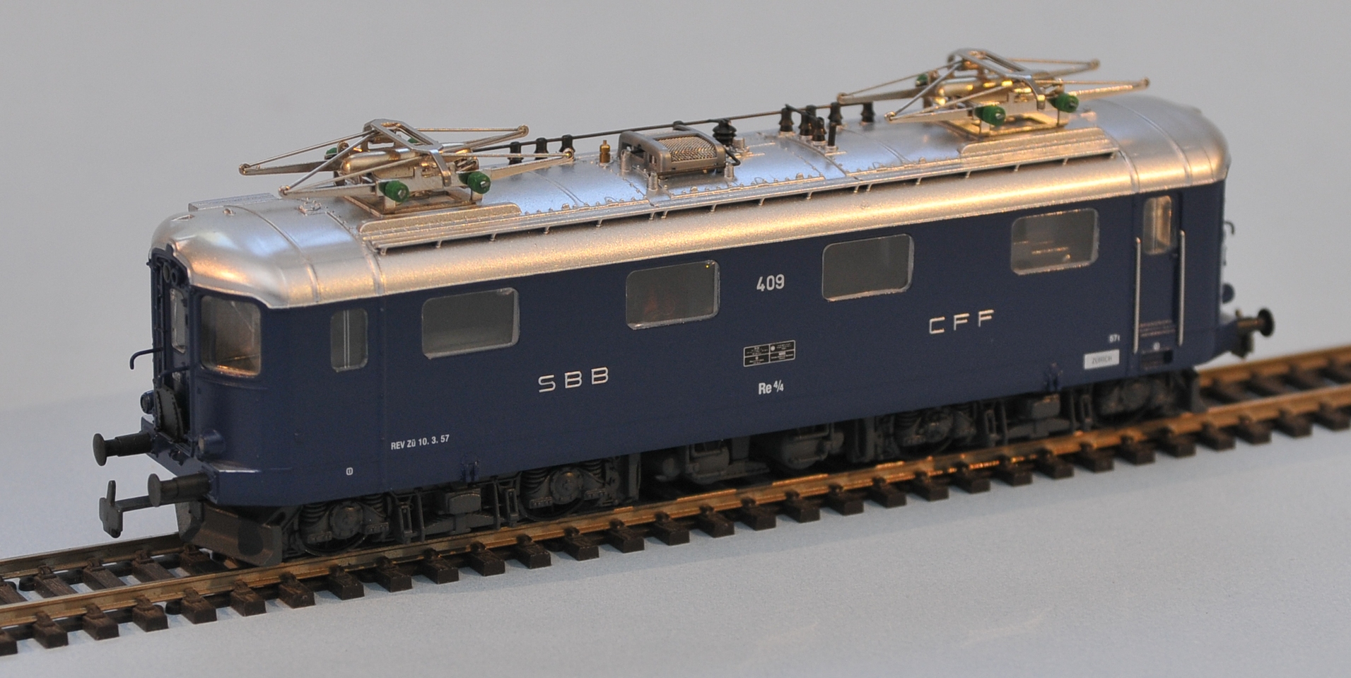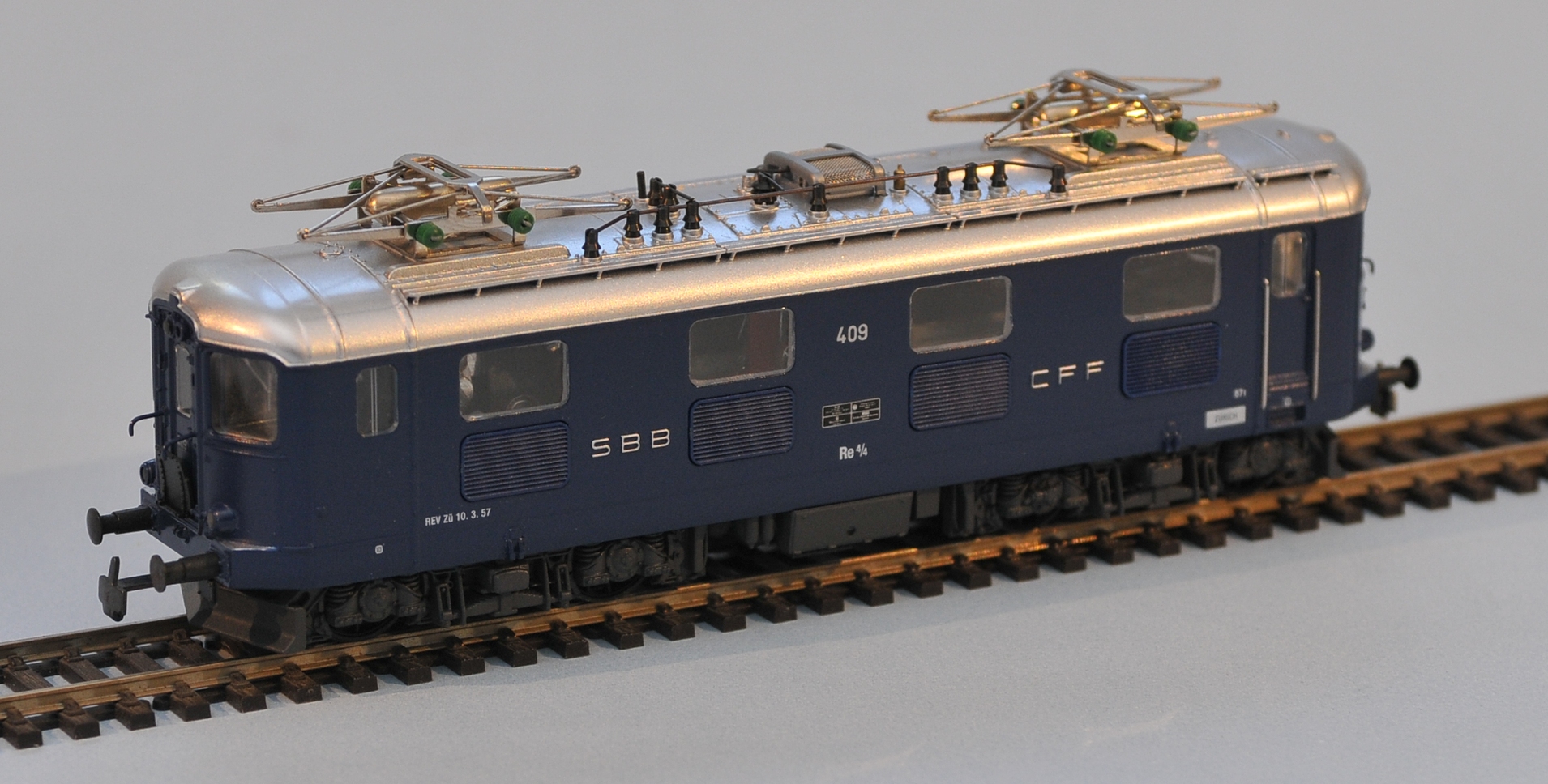 | Produktbeschrieb | Re 4/4 I Serie 1, 4 Lüftungsgitter Relief-/Tampondruckbeschriftung, Raddurchmesser 1.42 cm, Neuauflage 2002 mit Motor Typ 88, 2005 erneut produziert, mit panzergrauem Dach sowie Rädern mit schwarzen Speichen und blanken Laufflächen, Wiederauflage 2007 mit Führerstandseinrichtung, NEM-Schacht und Lichtwechsel 3+1, © UNUM (nicht mehr verfügbar) |