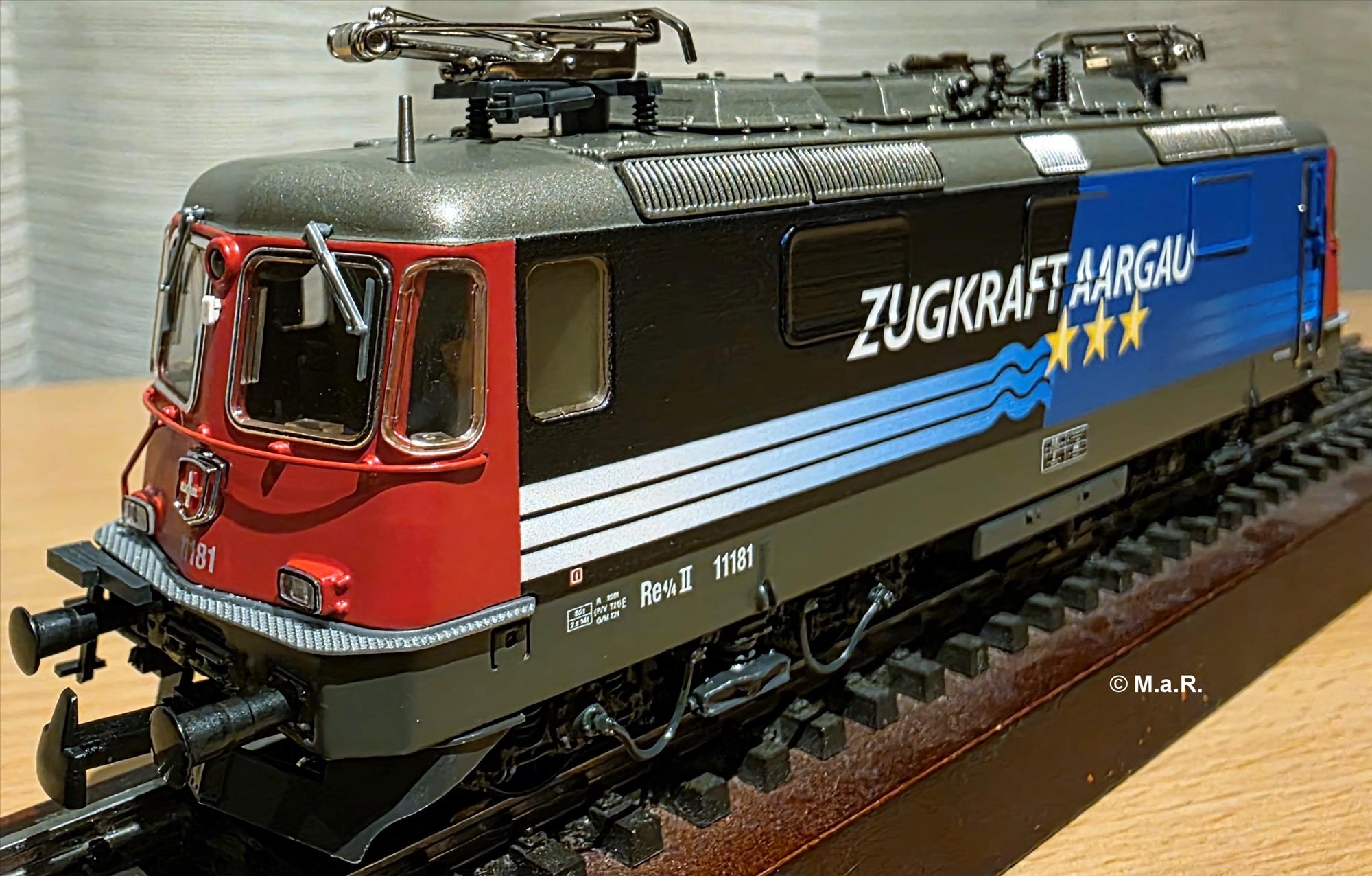Produktbeschrieb | Werbelok Zugkraft Aargau, 1-motorig, eckige Lampen, 2 Pantos, Digitaldruck, auch 2-motorig erhältlich |