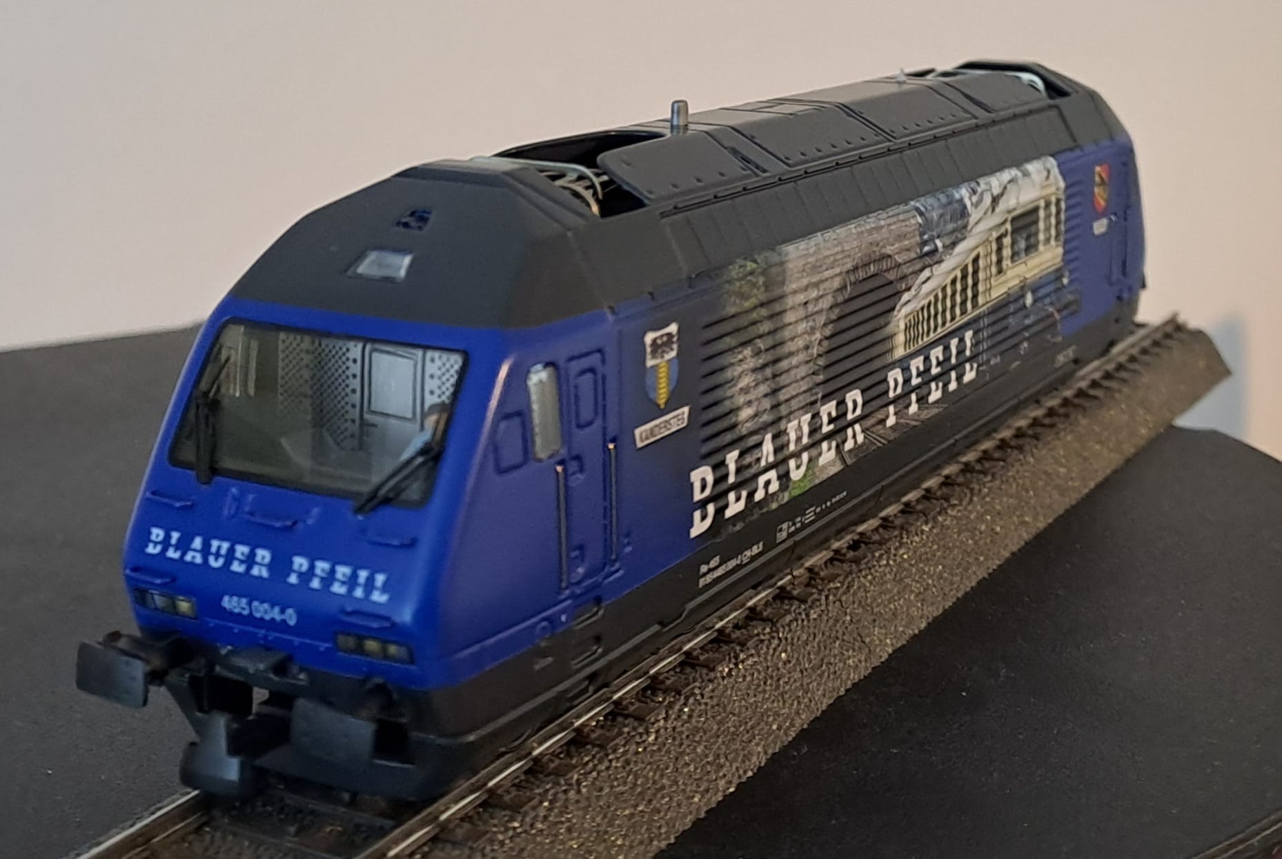 | Produktbeschrieb | Limitiertes Sondermodell (Fantasielok) HAG / Gecko-Design (Arthur Seitz) Blauer Pfeil, Wappen Bern und Kandersteg, nummeriert |